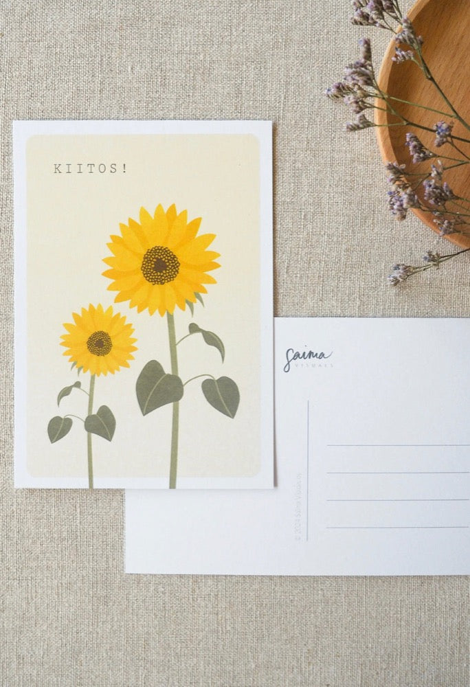 There can be many reasons for giving thanks. With Saima Visuals' beautiful floral cards, you thank and delight the recipient at the same time. The card has a simple but effective text "Thank you!" Choose a sunflower or a string.
