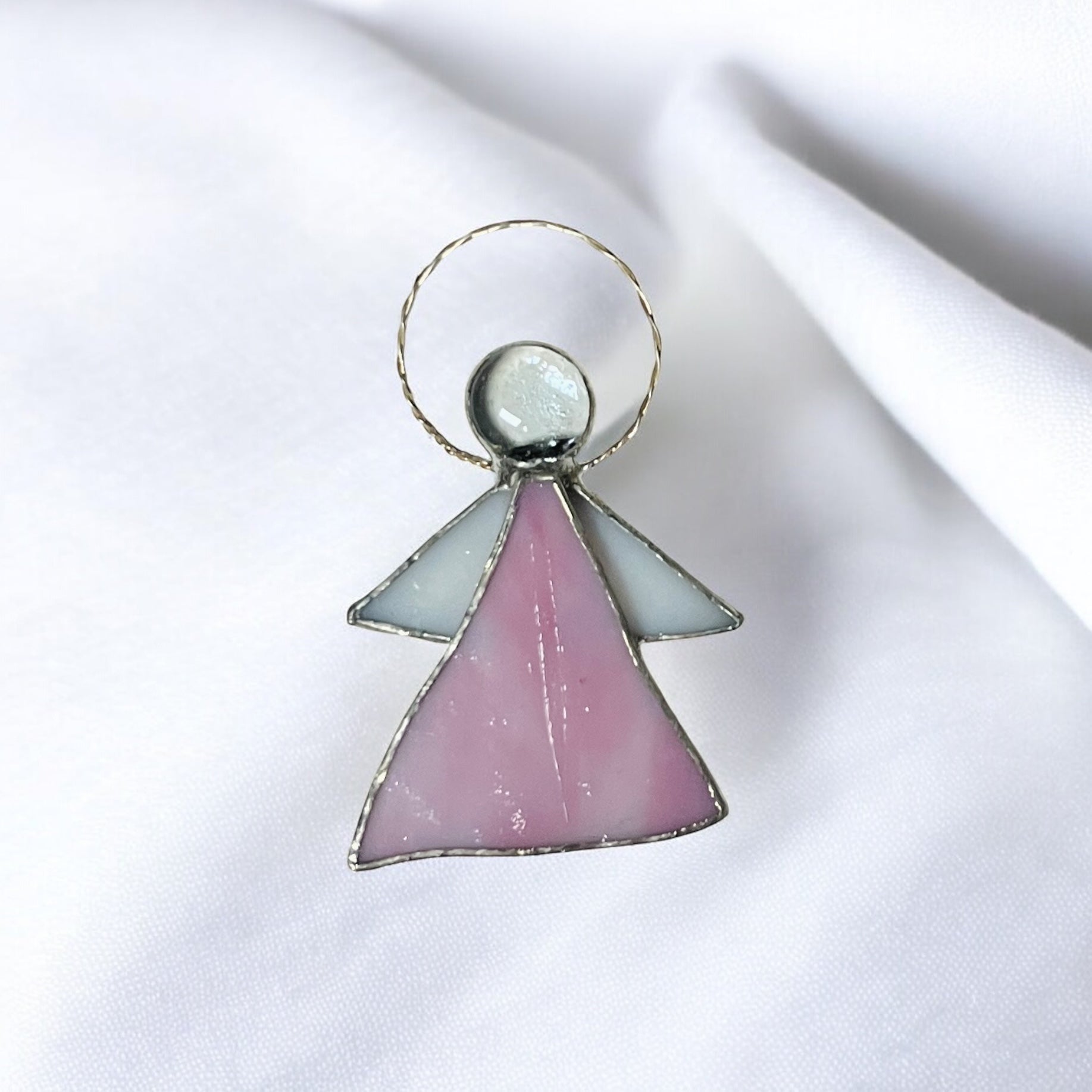 The angel is approximately 12 cm long. Please note that both sides of the stained glass angel are colored, so the other side may differ from the product image.