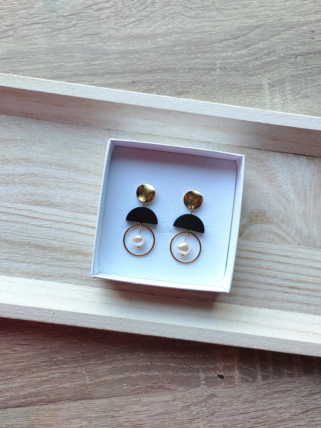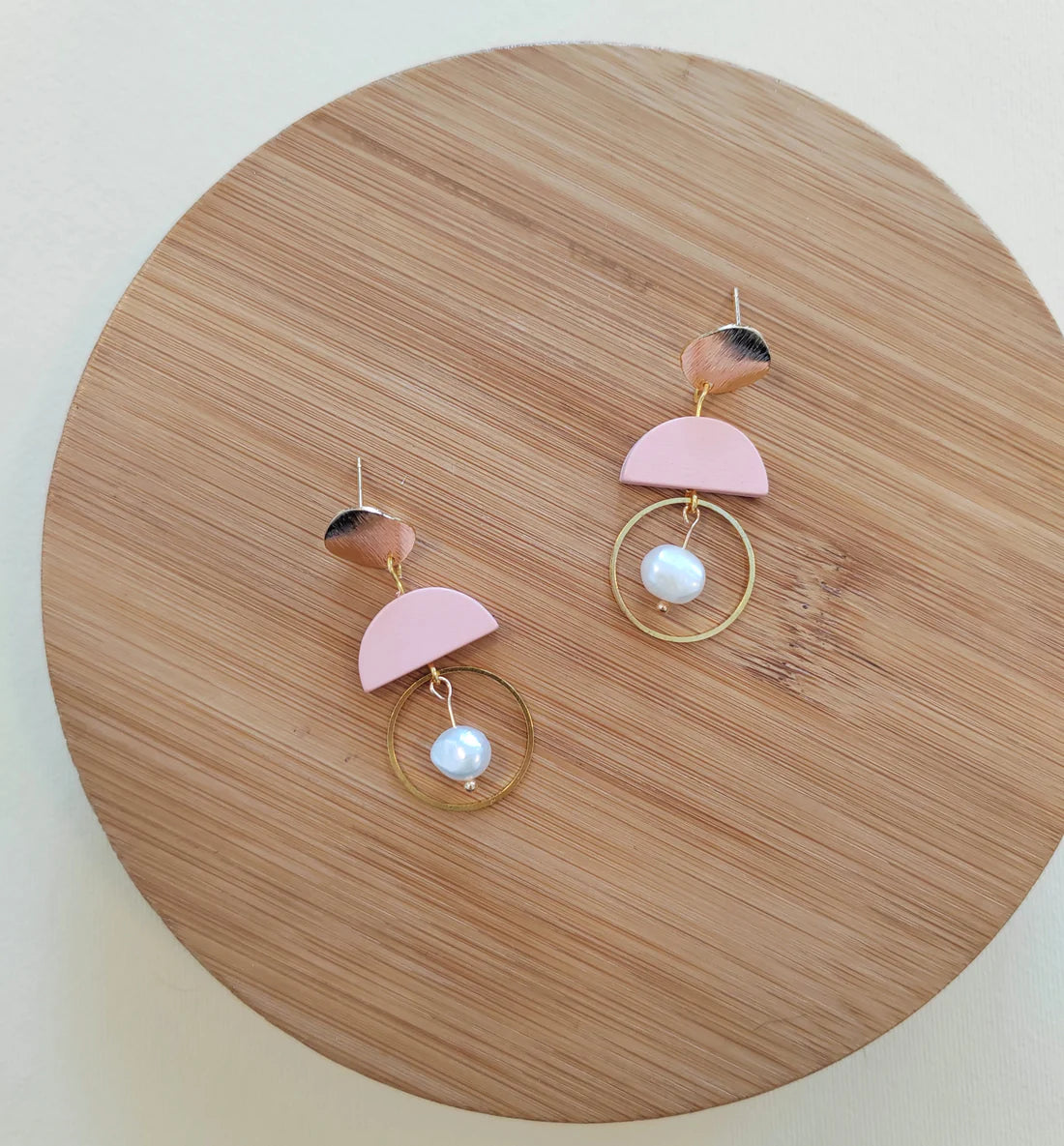 Limetion's colorful Lina earrings, the details of which are wood and genuine freshwater pearls.