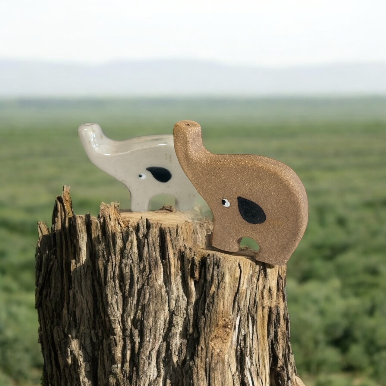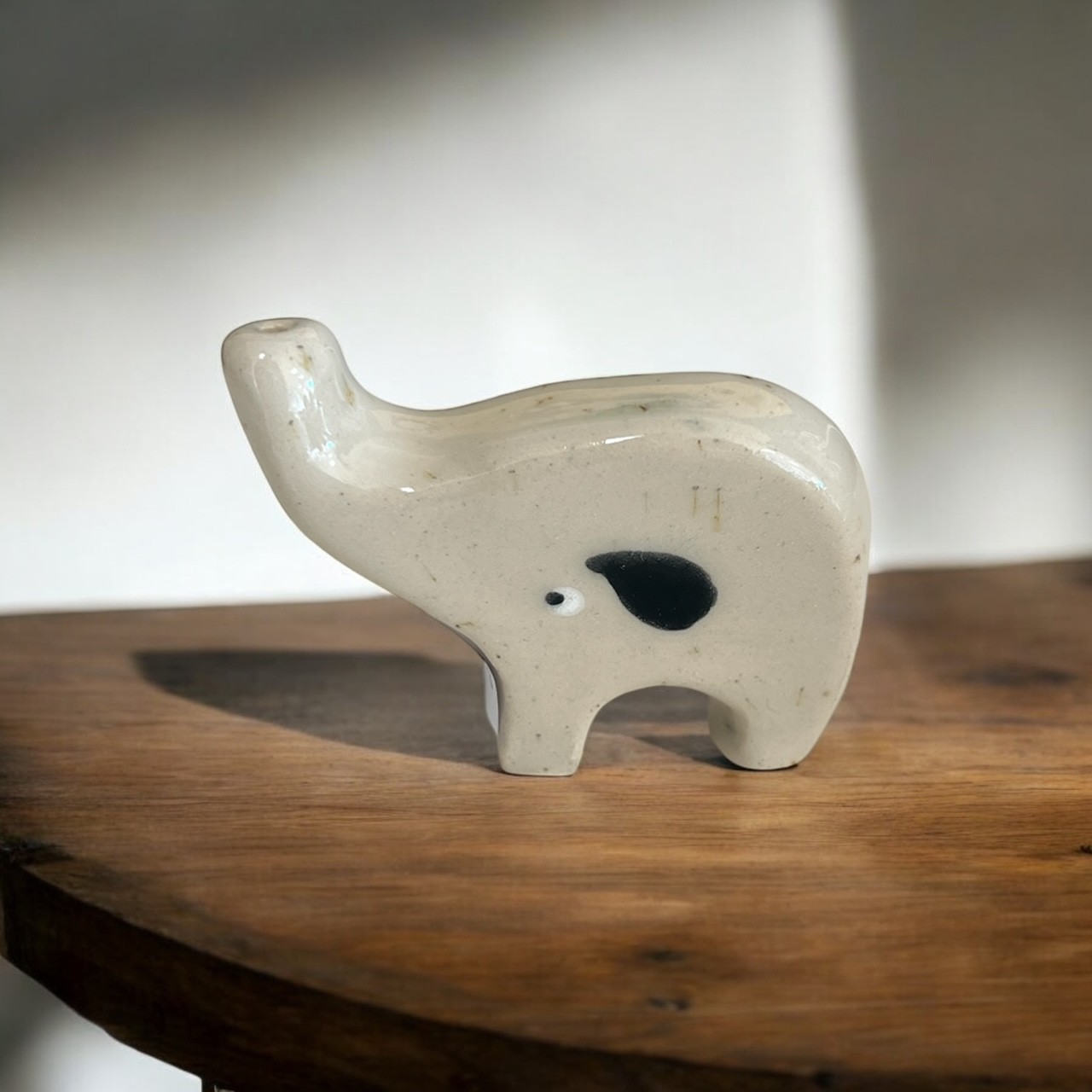 These unique elephants from Jo.ka Gallery, which also serve as flower bud vases, are handmade and ceramic. The captivating elephant vase has a small hole at the tip of its stem, where you can put a flower bud.