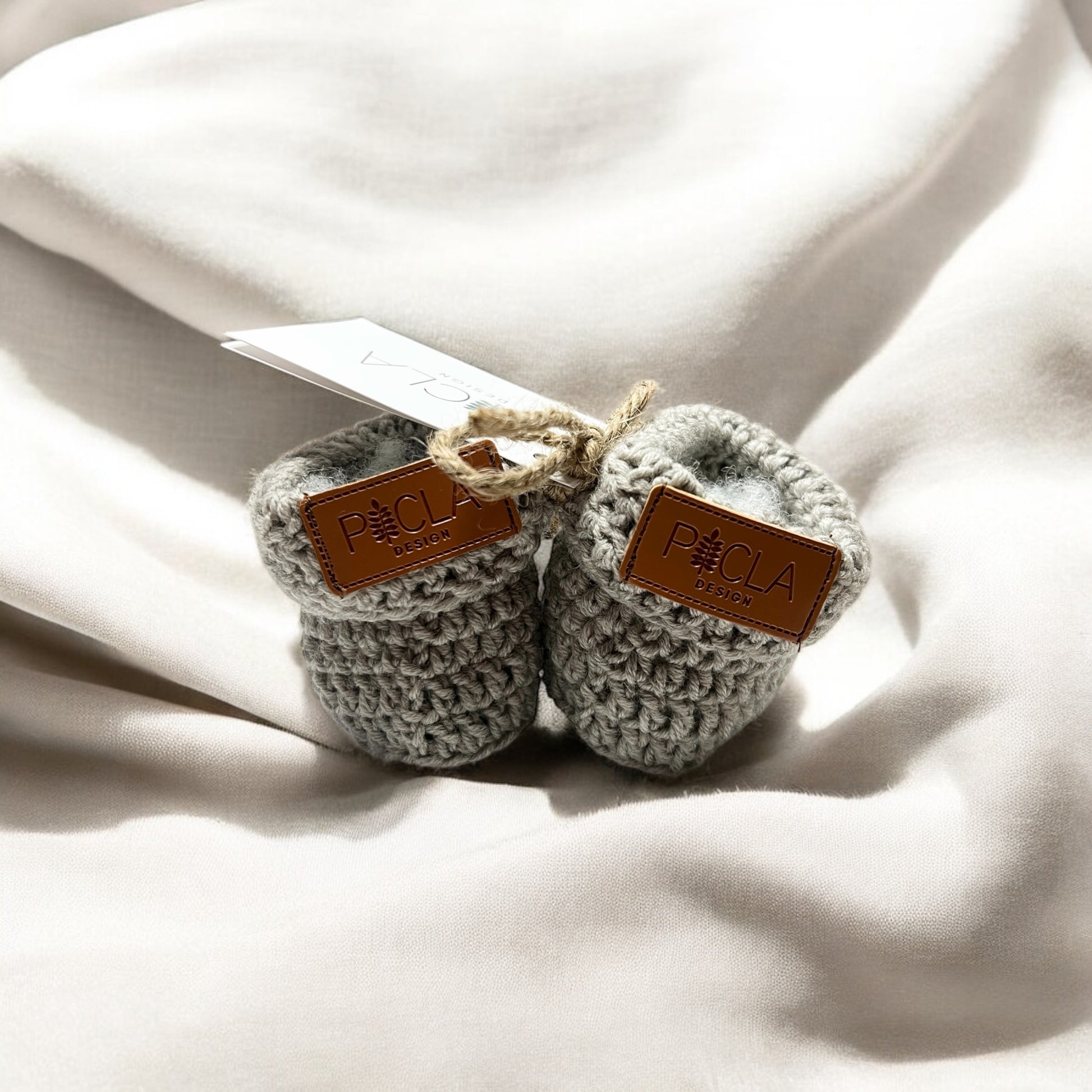 Merino wool slippers are crocheted from 100% merino wool, which is a non-itchy and washable material. The slippers are therefore wonderfully soft, but at the same time warm and non-itchy. On the reverse side of the slipper are Picla Design's faux leather logos.