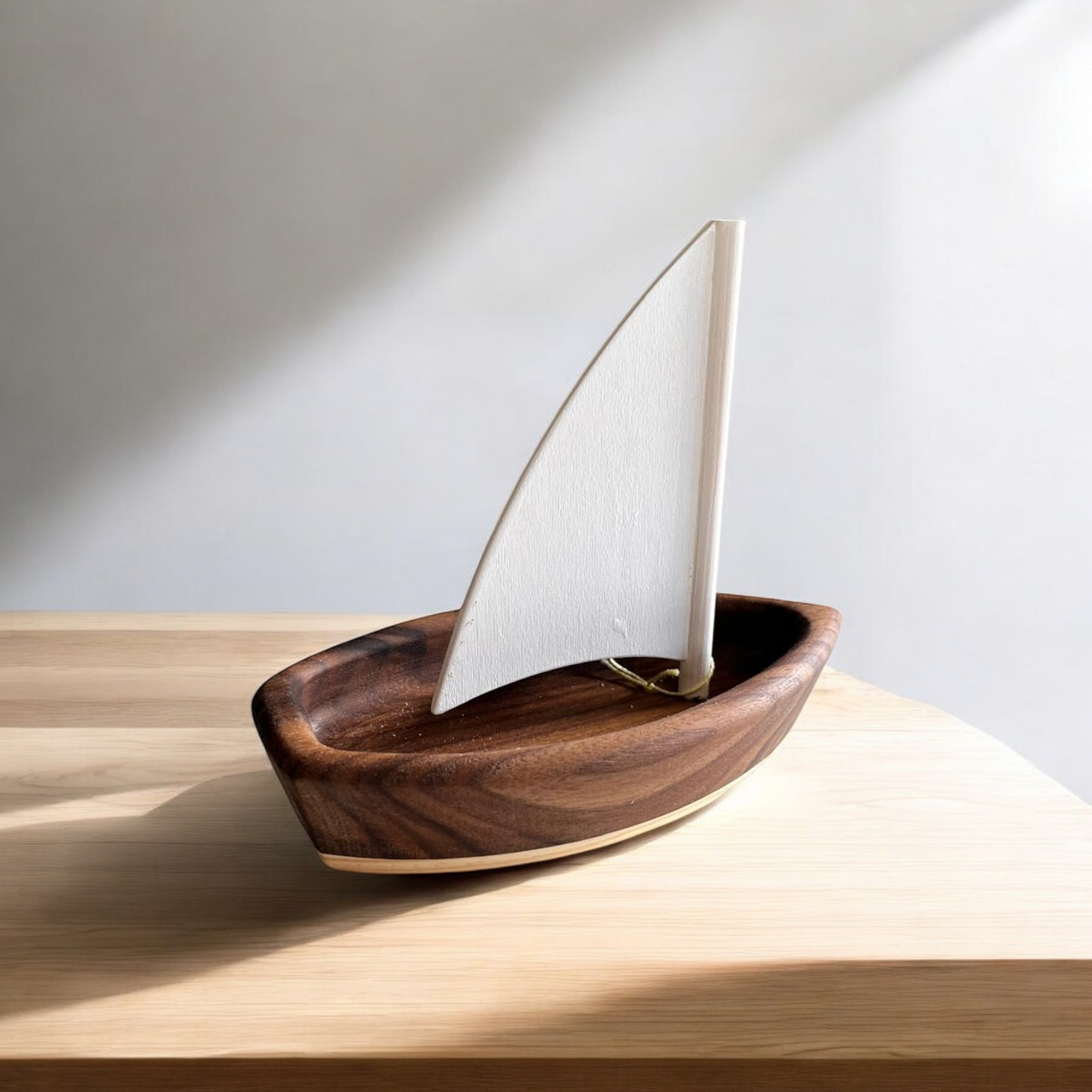 Tuffa's wooden toys Sailboat is a nostalgic toy that offers opportunities for many kinds of play. The sailboat is great for children's games, but is also a beautiful decoration for example on a bookshelf. The toy beautifully combines American walnut and Finnish pine. The sailboat floats, so you can swim in the water!