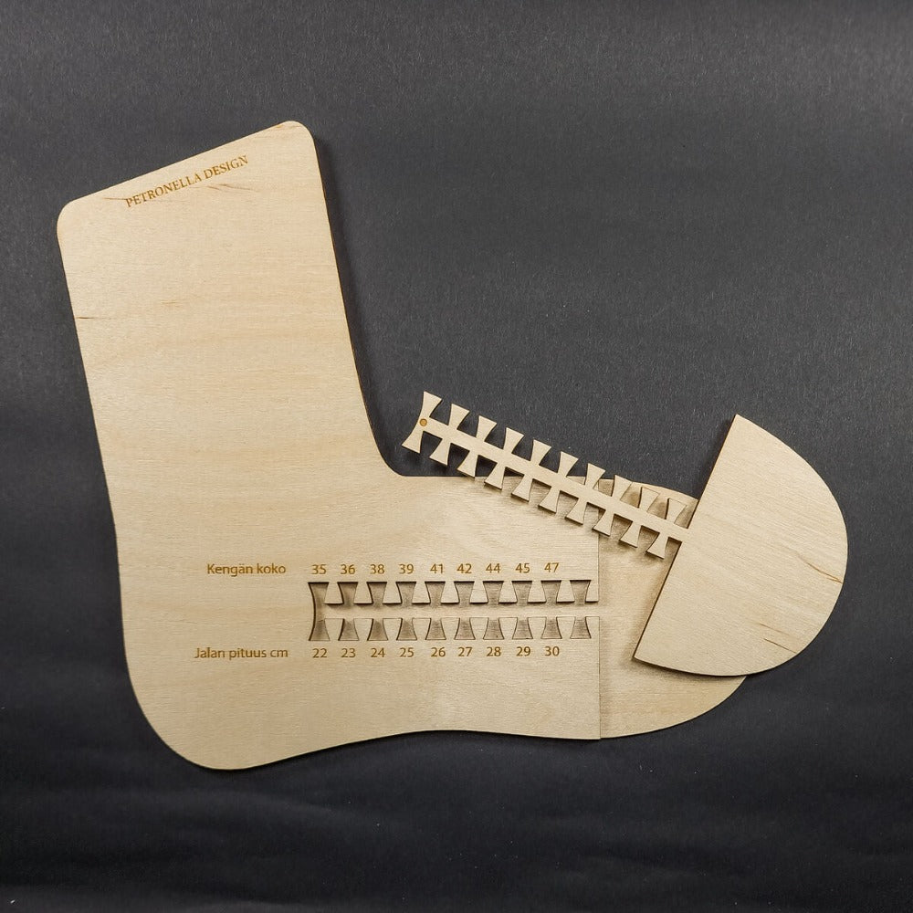 Petronella Design's adjustable sock gauge helps the wool sock maker to determine the size.