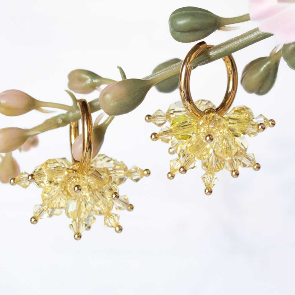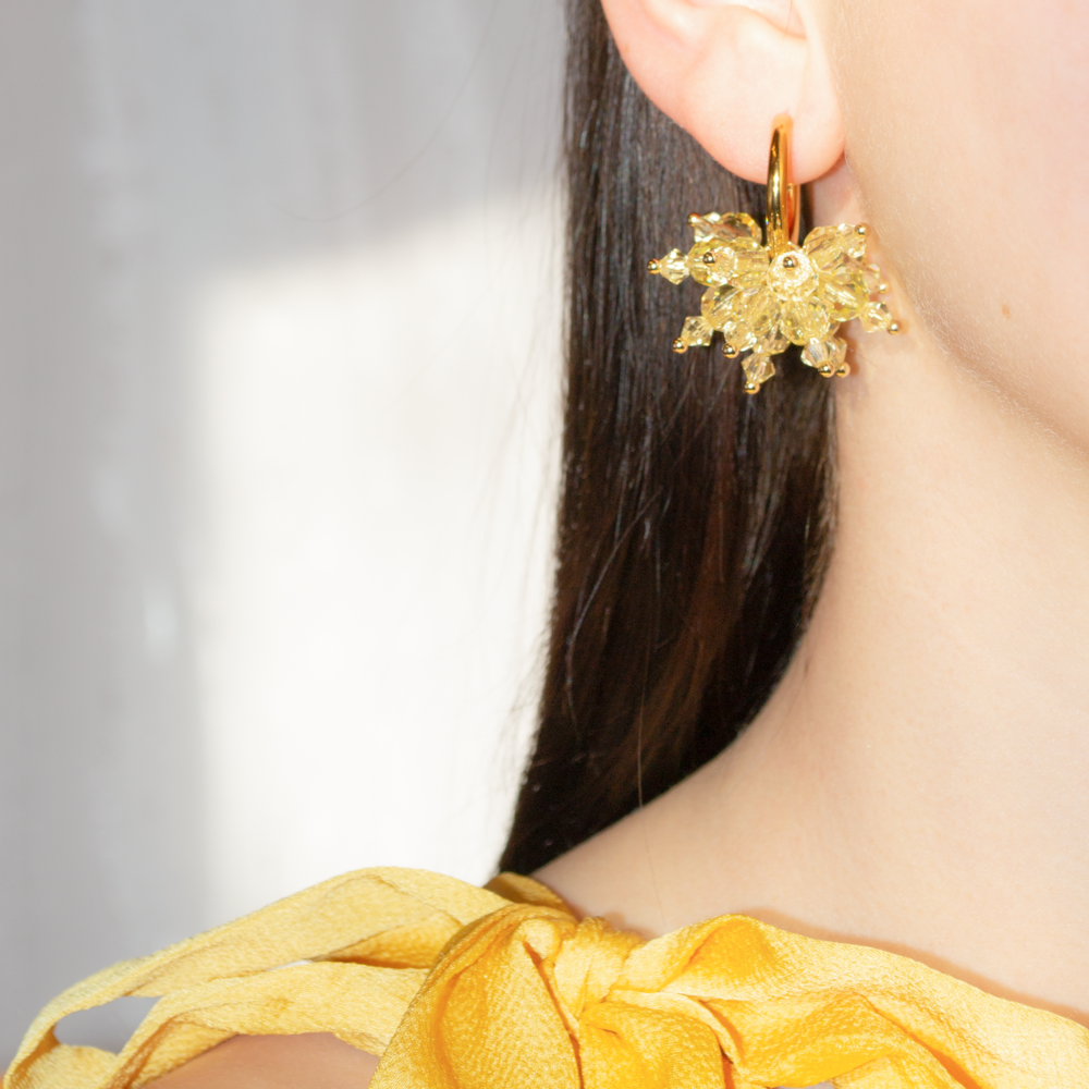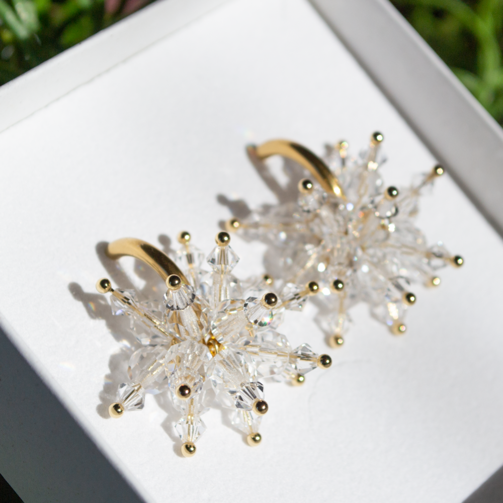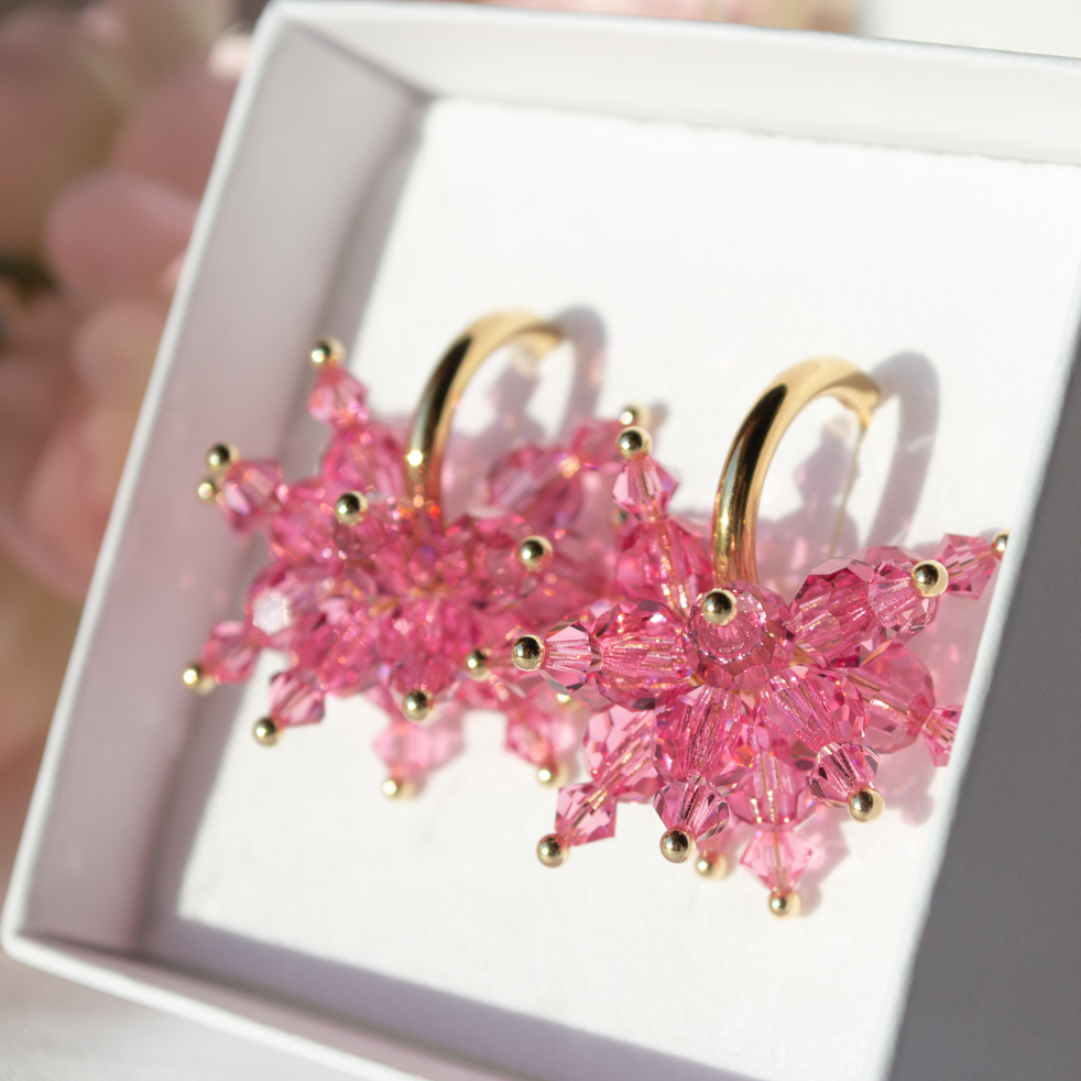 Kimallusta? Check. Väriä? Check. Crystal Tassel- korvakoruissa on kaikki mitä fiilistä noustattavissa korvakoruissa pitääkin olla. Sen lisäksi ne on valmistettu käsityönä Suomessa. Crystal Tassel- korvakoruja on saatavilla neljässä eri värissä: tumman pinkki, keltainen, violetti ja kirkas. Korviksissa on kullanväriset renkaat.