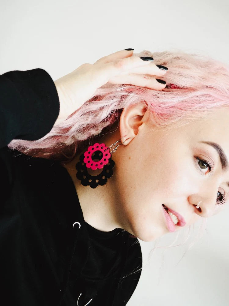 Loihti DAISY -korvakorut ovat näyttävät, joten nämä sopivat hyvin ihmiselle, joka rakastaa isoja korvakoruja! Koivuvanerin ansiosta korvakorut ovat mukavan kevyet.