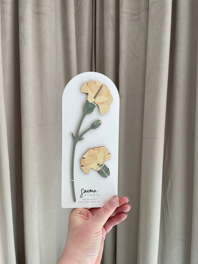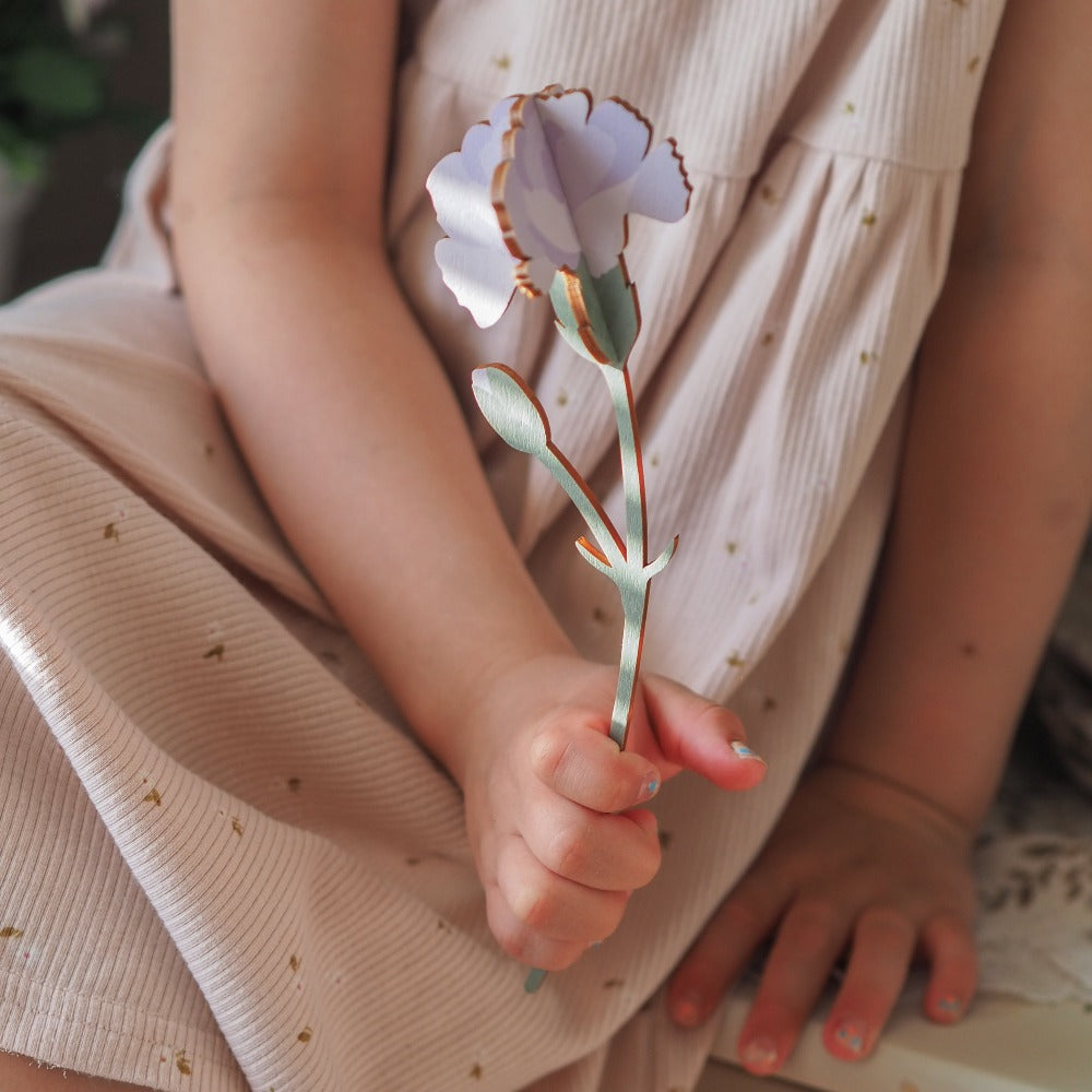 Ei kastelua, ei stressiä. Saima Visualsin koivuvaneriset neilikat eivät kuihdu tai kylmety vähän viileämmilläkään keleillä. Tästä perinteisiä kukkia kestävämpi lahja kevään ja kesän juhliin ja tuliaisiksi mökille. Neilikka on koottava, joten se sopii vaikka kirjeenä lähetettäväksi kivaksi yllätykseksi!