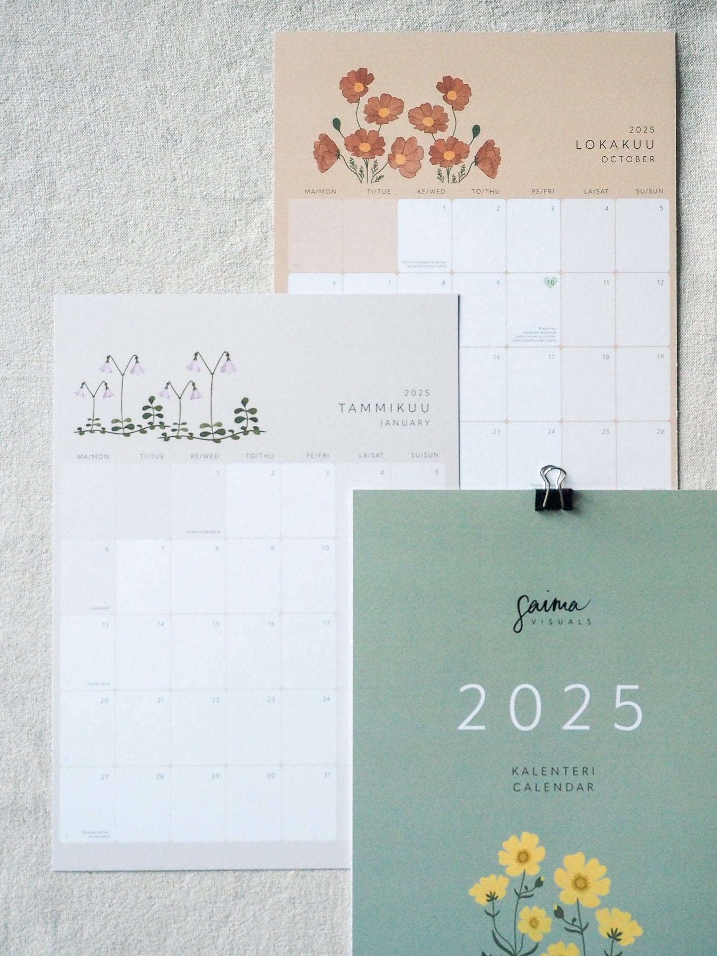 Kaunis kalenteri, johon mahtuu kaikki tärkeät menot ja suunnitelmat!