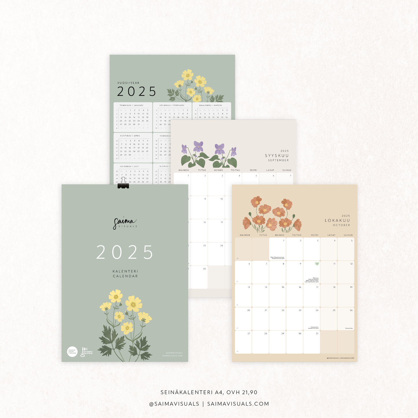 Ja tietenkin kauniita Saima Visualsin kukkakuvituksia ilostuttamaan arkeasi! ♥︎