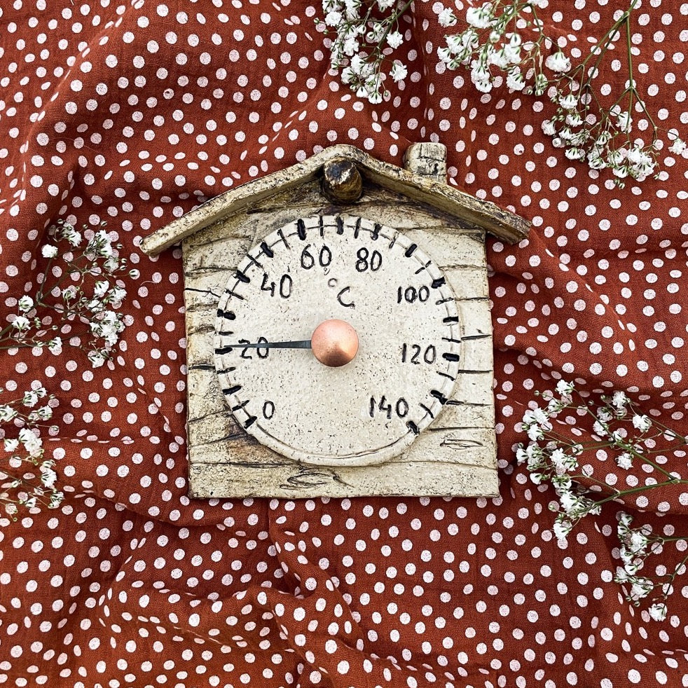 Pitkän linjan keramiikkataiteilijan Savi-Sepon valmistama saunamittari sopii suomalaiseen saunaan kuin voi ja tilli uusiin perunoihin juhannuksena. Jos sinulla ei ole omaa saunaa, vie mittari lahjaksi ja olet kesän toivotuin mökkivieras!
