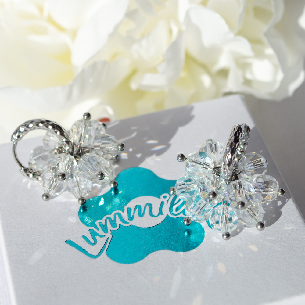 Lummilillin Pom Pom -korviksilla saat säihkettä elämään ja teet arkisestakin asusta vähän kiinnostavamman. Hopeanväristen teksturoitujen renkaiden päässä on 24 kimaltavaa kristallia. Kaikki Lummilillin korvakorut valmistetaan käsityönä huolella valituista materiaaleista.