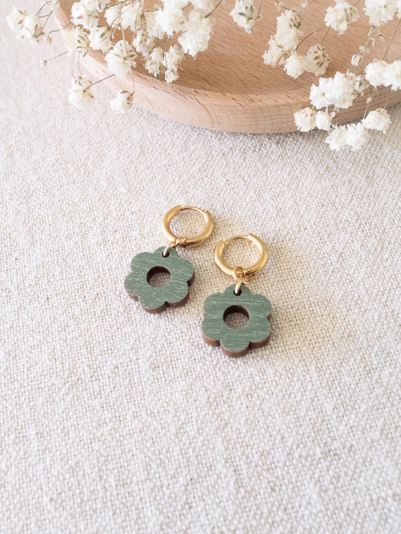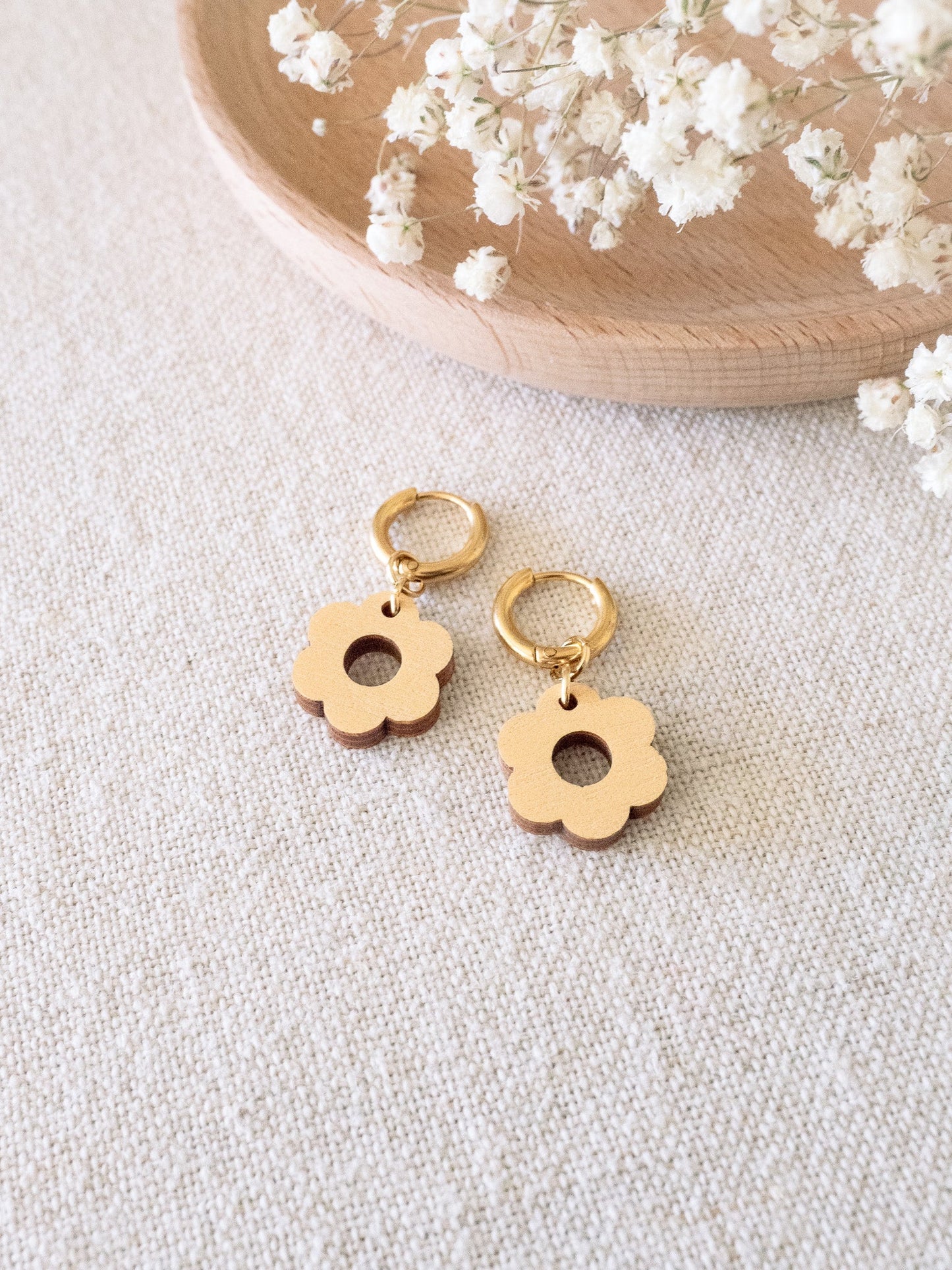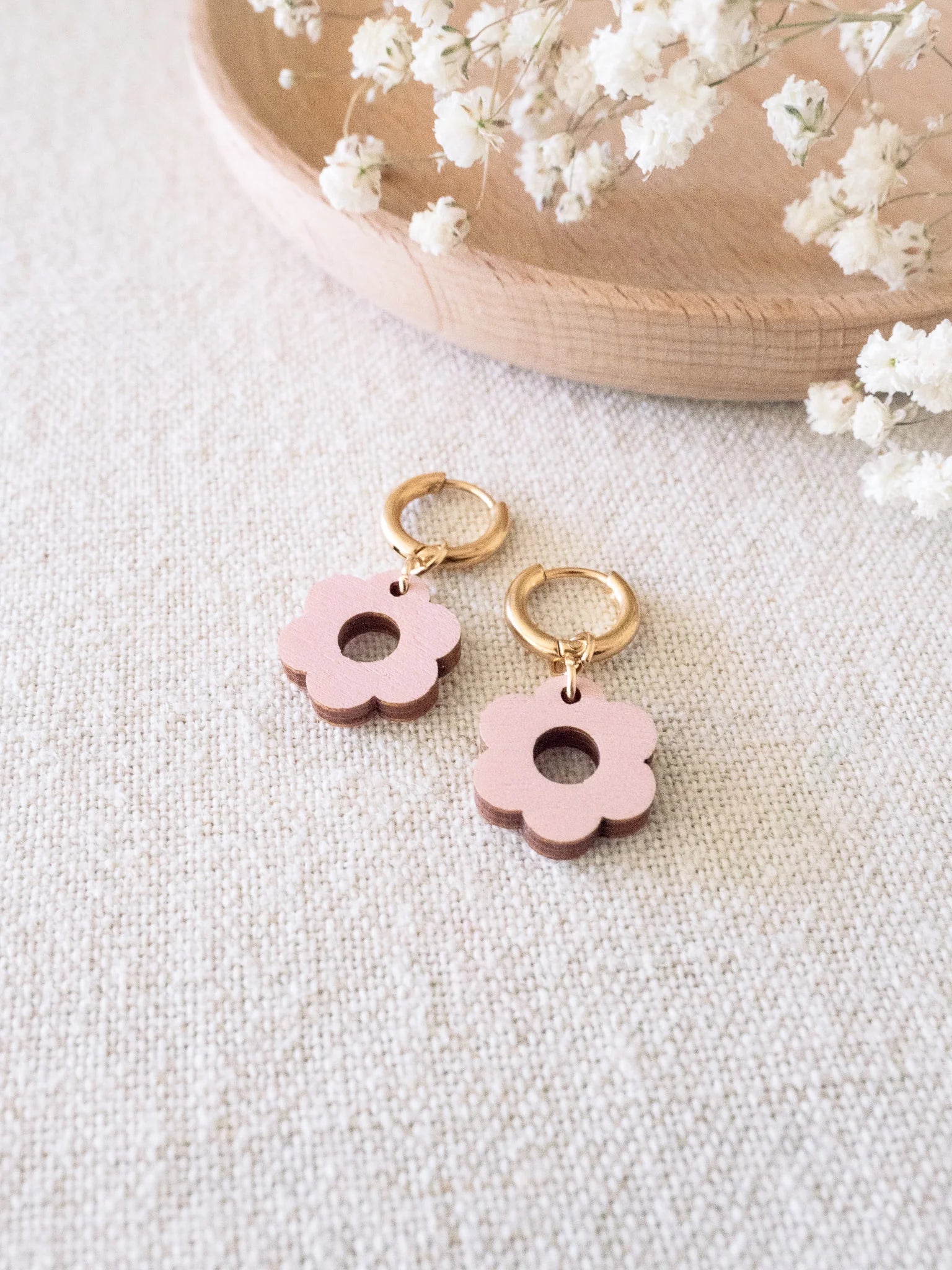 Malla-korvakorut, vaneriset kukkakorvikset (eri värejä)