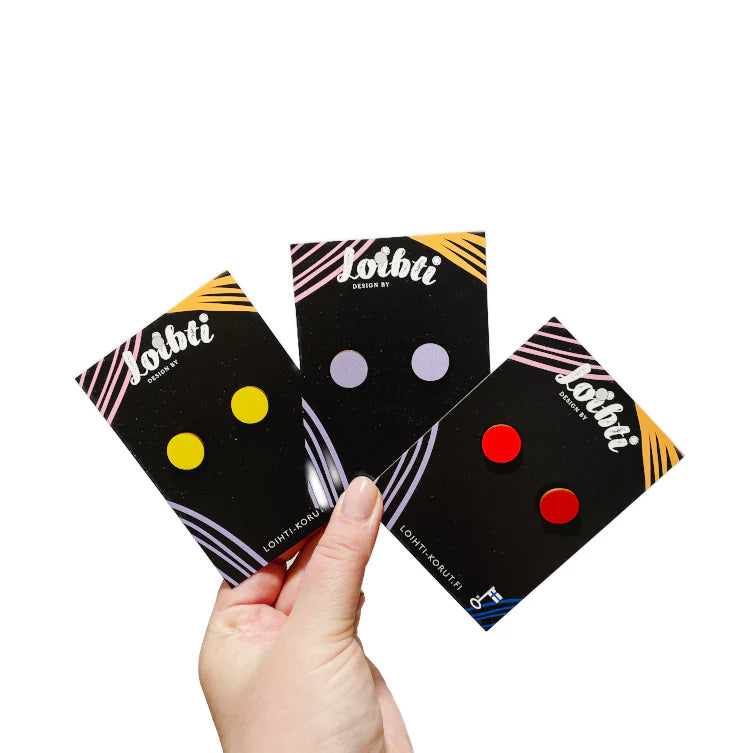 Loihti NAPPIS-korvakorujen materiaali on hyödynnetty DAISY-korvakorujen hukkapaloista, näin tuotehävikkiä vähennetään tehokkaasti! Värivaihtoehtoja on useita ja ne voivat vaihdella hieman eri valmistuserien mukaan.