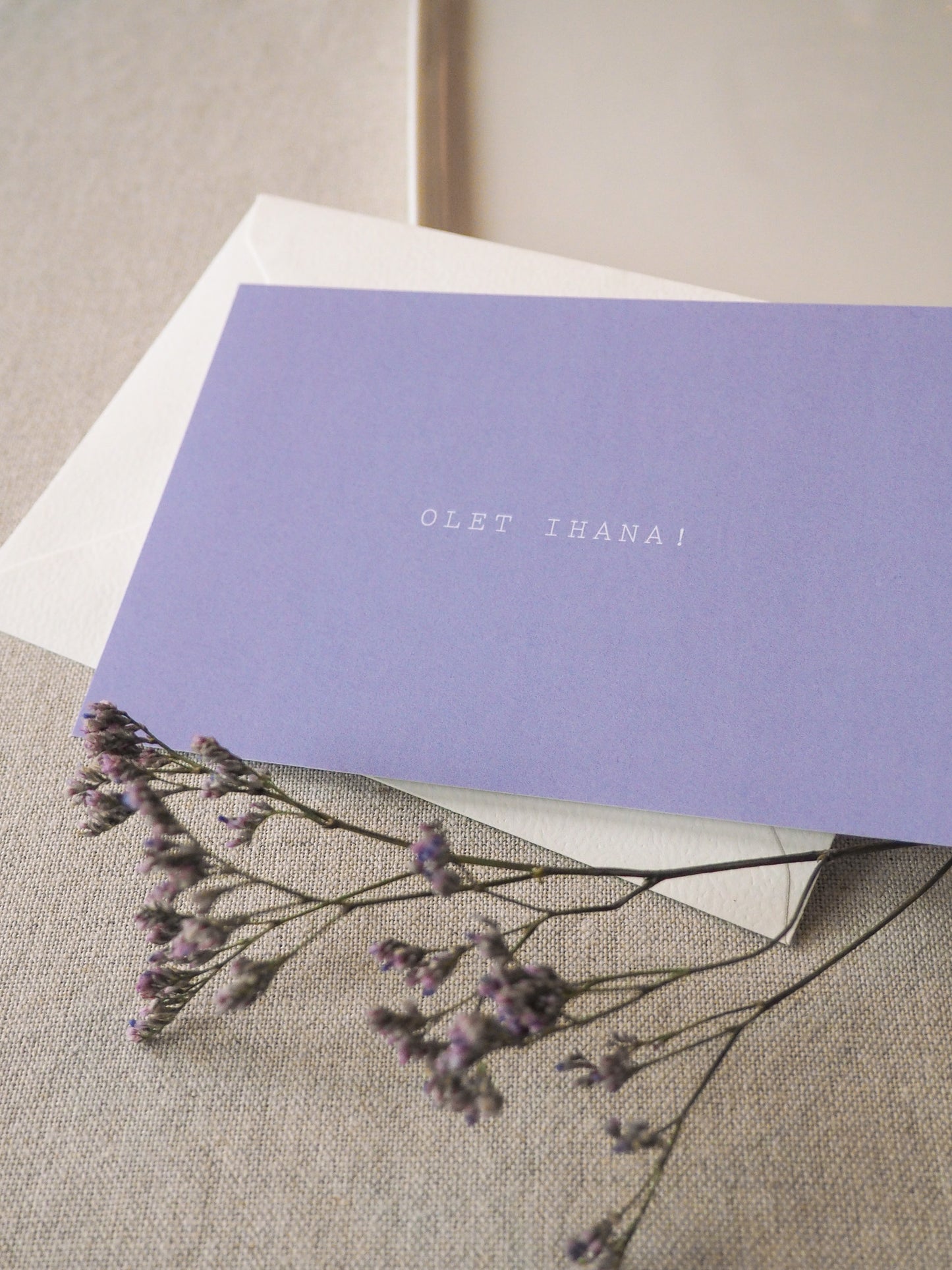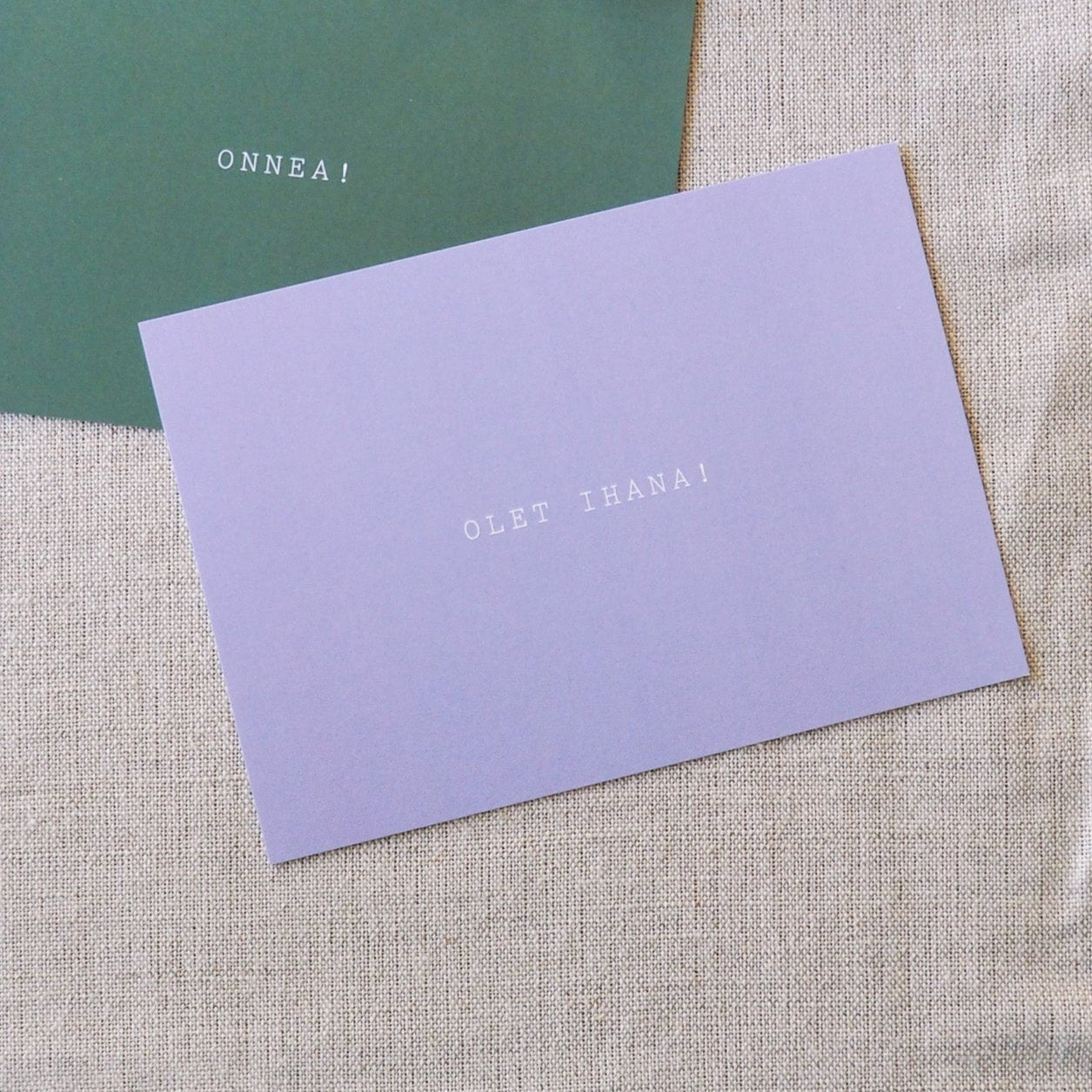 Olet ihana -postikortti on täydellinen kortti, kun haluat kiittää tai muuten vaan jotakuta. Saima Visualsin postikortit on suunniteltu ja valmistettu Suomessa.