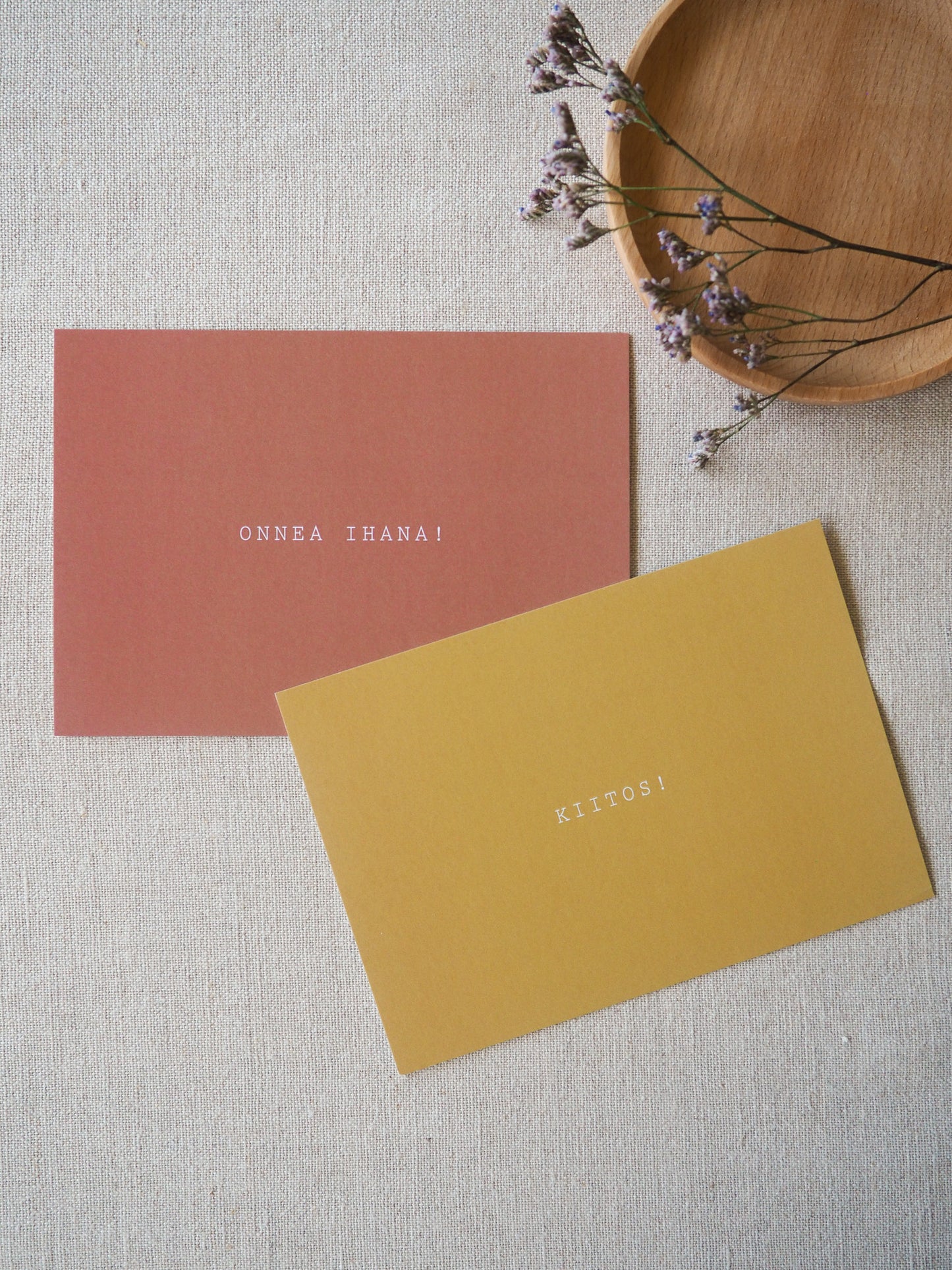 Onnea ihana -postikortti on täydellinen kortti, kun haluat onnitella lähimmäistäsi. Saima Visualsin postikortit on suunniteltu ja valmistettu Suomessa.