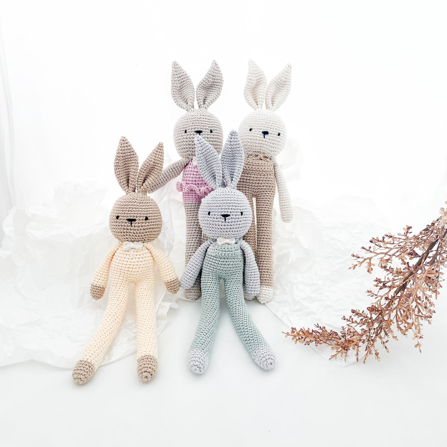 Pehmopupu on jämäkästä puuvillasta virkattu pupu, jonka pituus on hieman yli 40 cm. CE-merkinnän ansiosta LongLeg pupu sopii täydellisesti myös lasten leikkeihin. Vauvoille pupuissa on paljon hypisteltävää ja pitkistä jaloista on mukava tarttua kiinni.