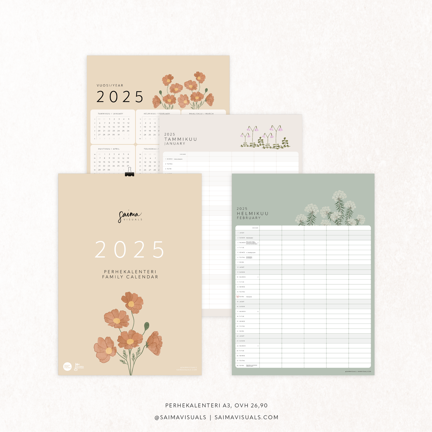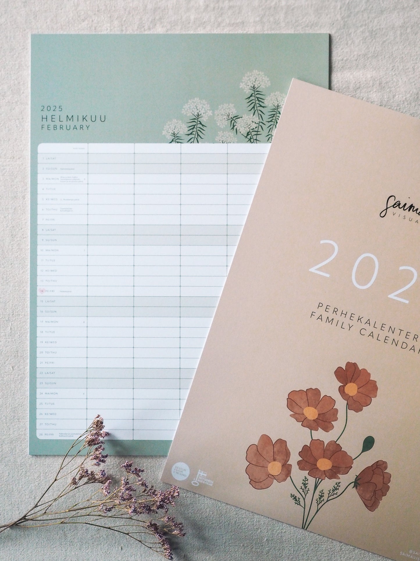 Kaunis perhekalenteri, johon mahtuu koko perheen menot ja suunnitelmat!