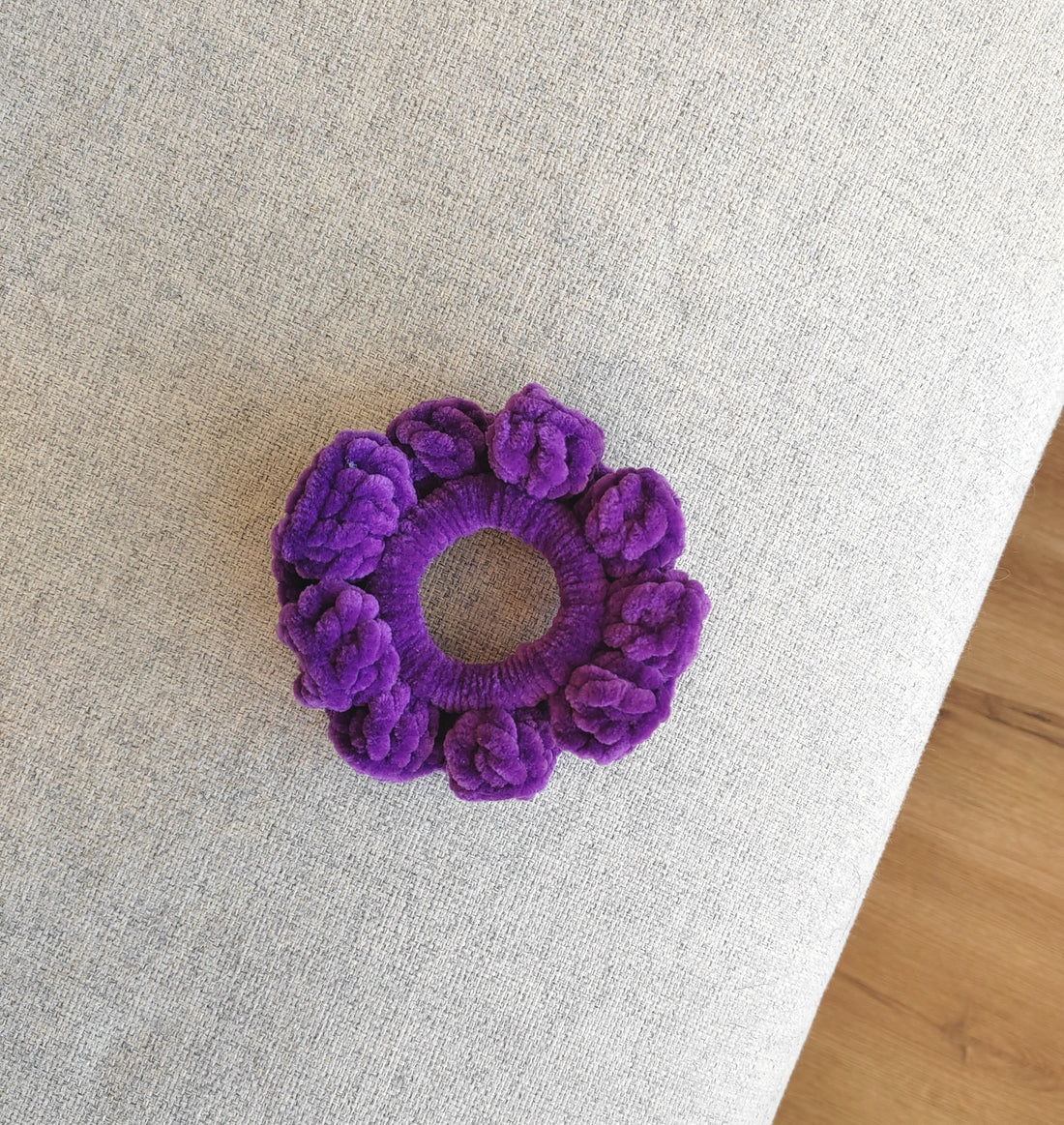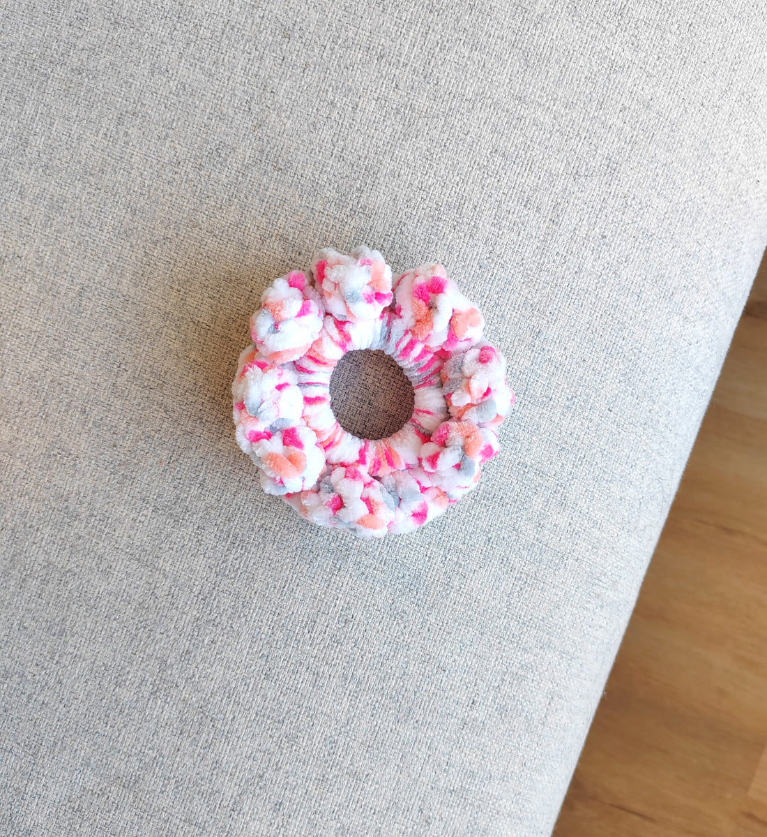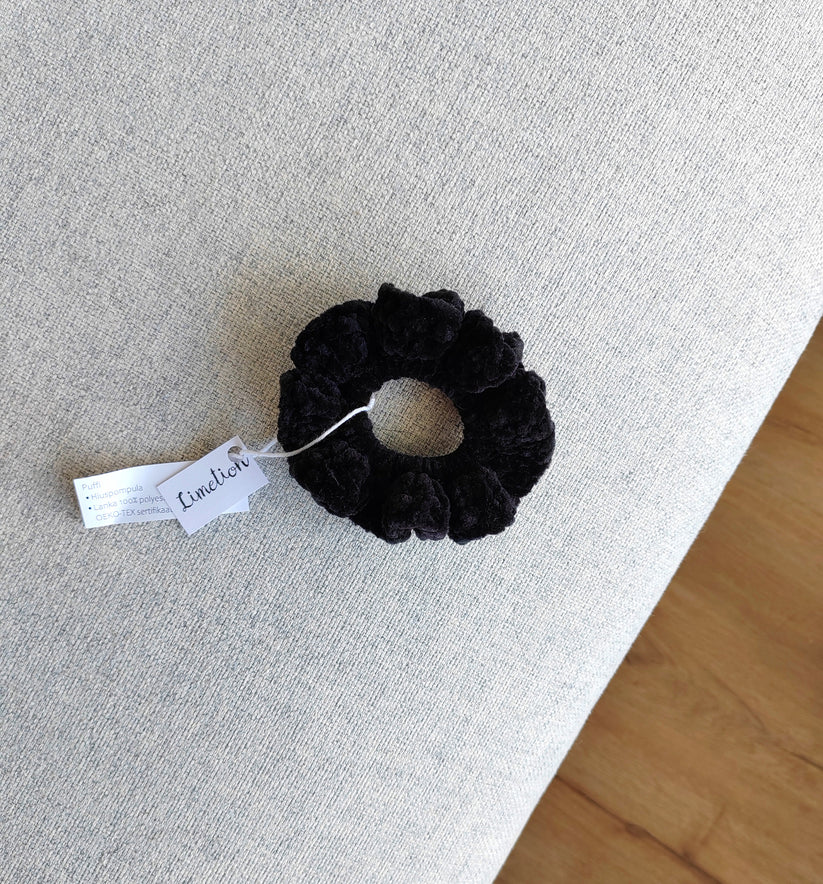 Limetionin ihanan pörheästä ja pehmeästä 100% polyesterlangasta tehty Puffi on hellä hiuksille. Puffi on virkattu nylon tai kangaspäällysteisen kuminauha hiuslenkin ympärille.
