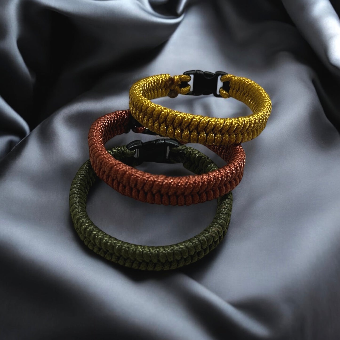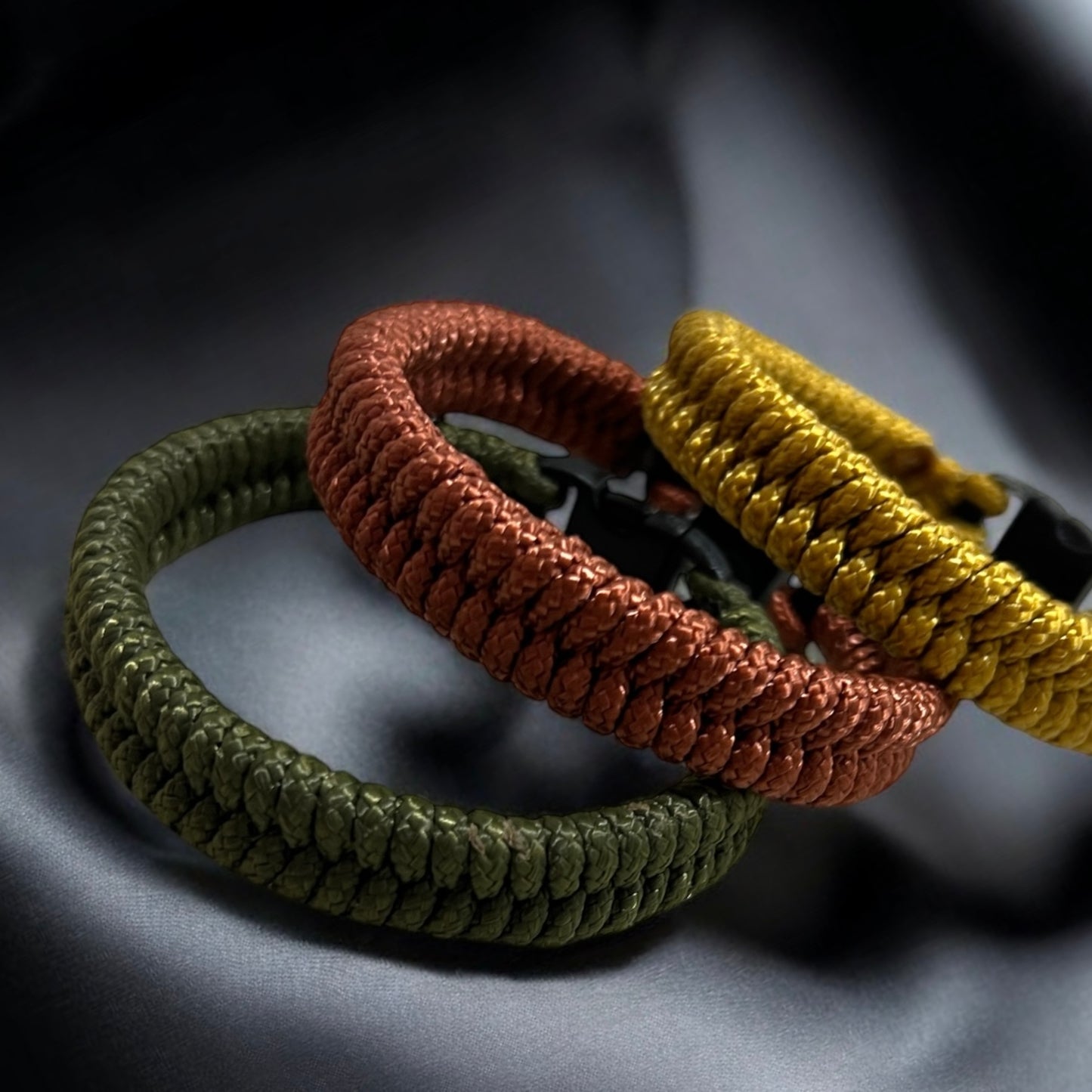 Erittäin laadukkaasta Paracord-narusta punottu ranneke on miellyttävän tuntuinen ja näyttävä lisä rentoon pukeutumiseen, mutta sillä on myös toinen merkitys - se toimii retkelläsi apunaruna, mikäli sellaiselle tulee tarve. Rannekkeen saa nimittäin kertaluontoisesti purettua yhtenäiseksi kolmen metrin naruksi, jonka kestävyys on jopa 200 kg vetoa.