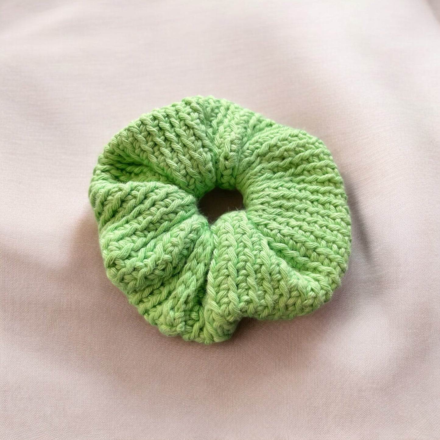 Limetionin Scrunchiet on käsinvirkattu kuminauhan ympärille.