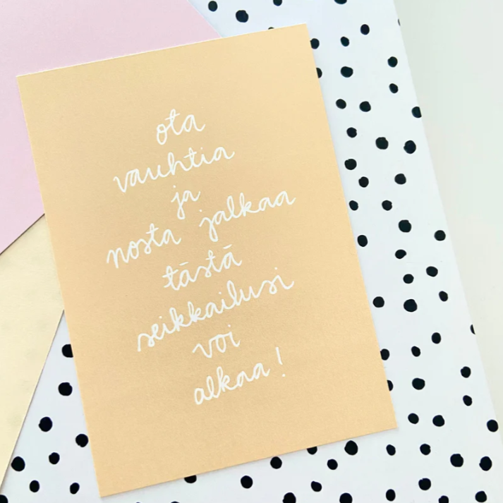 Puuhala Designin hyväntuulisella Seikkailu alkaa! -kortilla on kiva tsempata ja piristää ystävää!