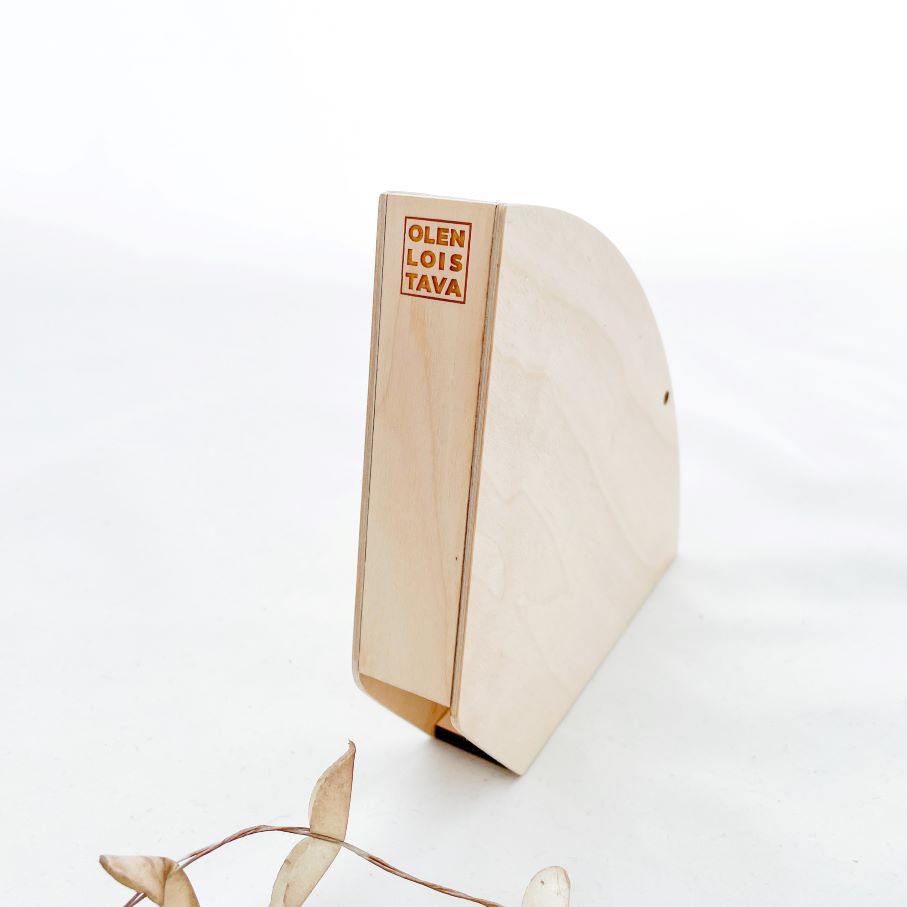 Olen loistavan minimalistinen ja tyylikäs suodatinpussiteline kotiin, mökille tai lahjaksi. Teline seisoo ryhdikkäästi, mutta telineeseen poratun reiän avulla voit ripustaa sen myös seinälle tai kaapin oveen.