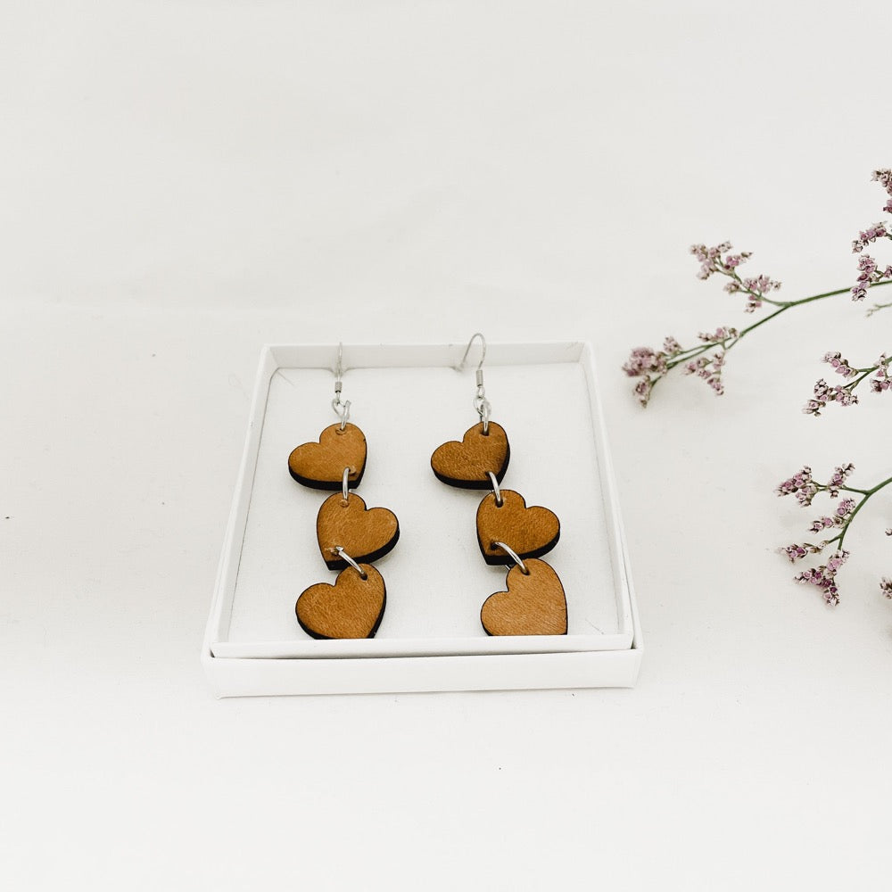 Mäkiniityn ihanan pehmeät ja kevyet sydänkorvikset on valmistettu käsityönä kotimaisesta peurannahasta.