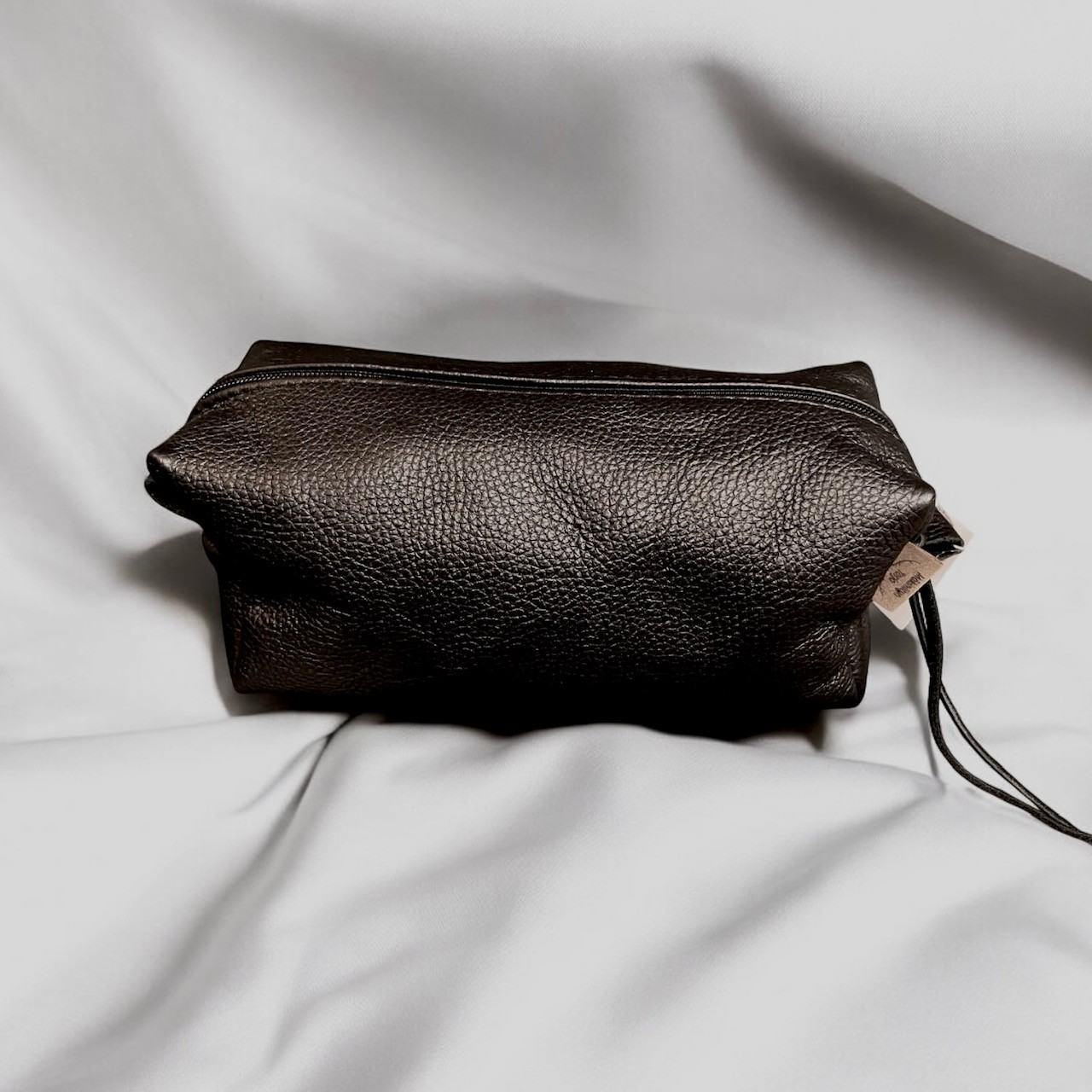 Toilettilaukku / meikkilaukku, pehmeää hirvennahkaa