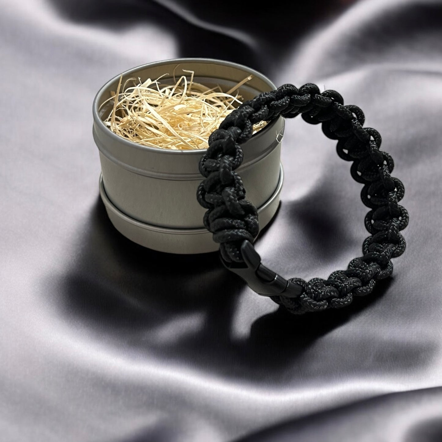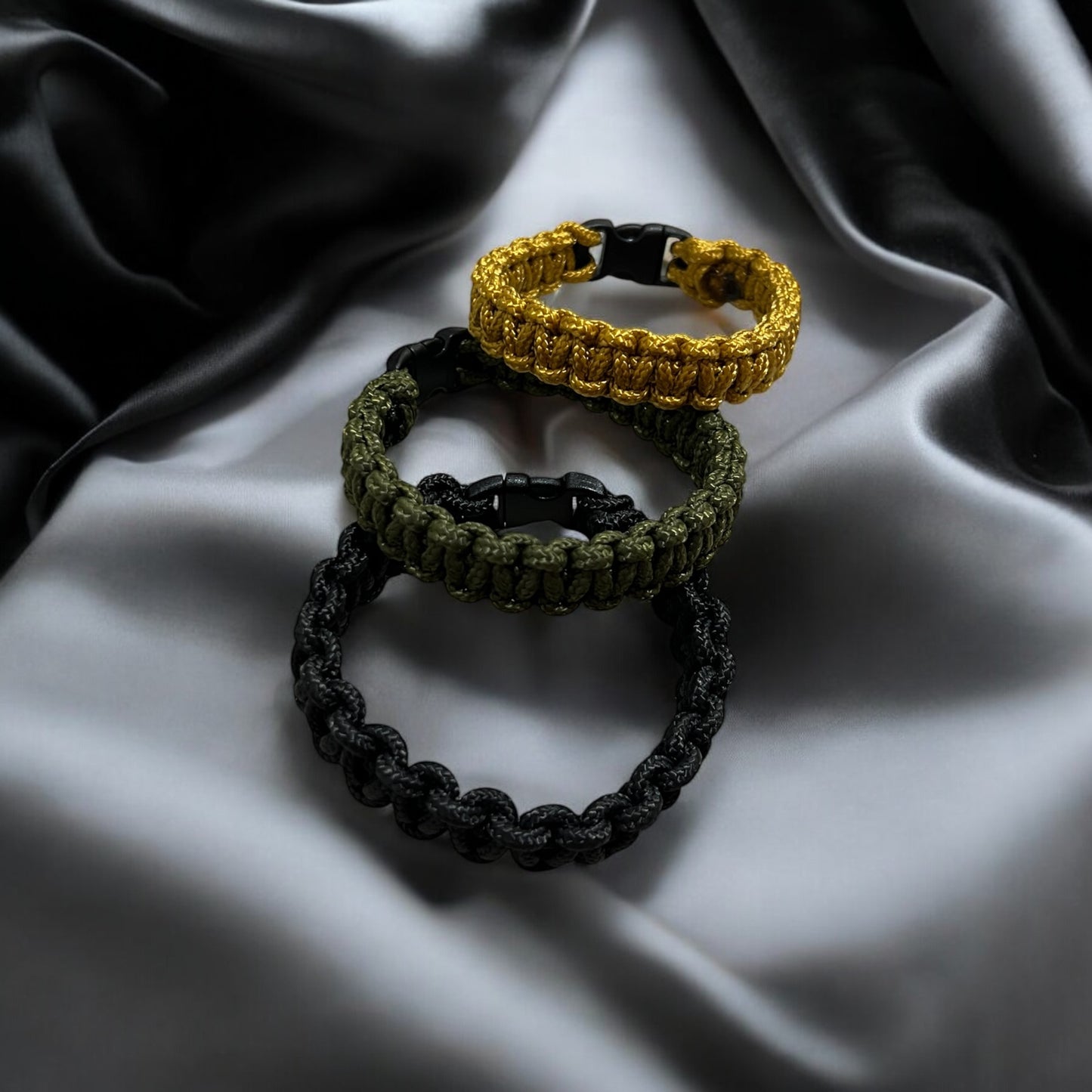 Erittäin laadukkaasta Paracord-narusta punottu ranneke on miellyttävän tuntuinen ja näyttävä lisä rentoon pukeutumiseen, mutta sillä on myös toinen merkitys - se toimii retkelläsi apunaruna, mikäli sellaiselle tulee tarve. Rannekkeen saa nimittäin kertaluontoisesti purettua yhtenäiseksi kolmen metrin naruksi, jonka kestävyys on jopa 200 kg vetoa.