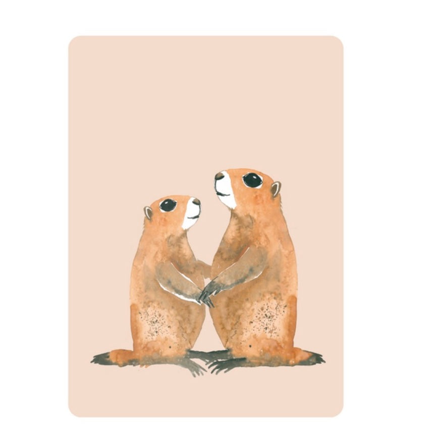Kaverini Yhdessä-kortissa kaksi murmelia pitää toisiaan kädestä. Tällä söötillä kortilla ilahdutat ketä tahansa.