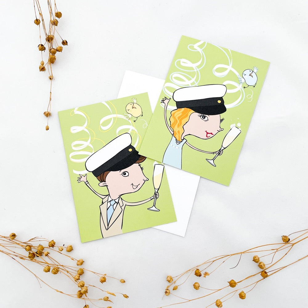 Terese Bastin kuvittama ylioppilaskortti, joka toimii kääntökorttina - Toisin päin kortti on poikamainen kortti ja toisin päin tyttömäinen! Sama kortti toimii siis tilanteesta riippuen kummin päin vain.